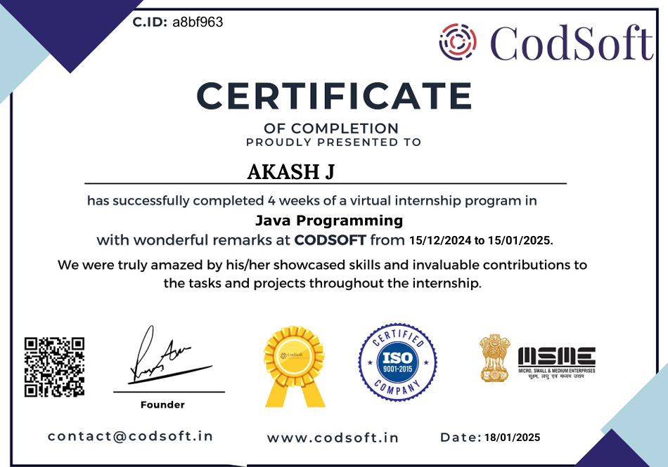 Aspiring Full-Stack Developer skilled in Java, React.js, Node.js, and MongoDB. Passionate about building responsive, user focused applications and solving challenges through creative problem-solving and clean code.